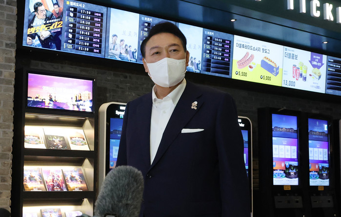 | ▲ 윤석열 대통령이 12일 오후 서울 시내 한 영화관에서 영화 '브로커'를 관람한 뒤 소감을 밝히고 있다. 영화 '브로커'에 출연한 배우 송강호는 한국 배우 최초로 칸국제영화제에서 남우주연상을 수상했다. 2022.6.12 |