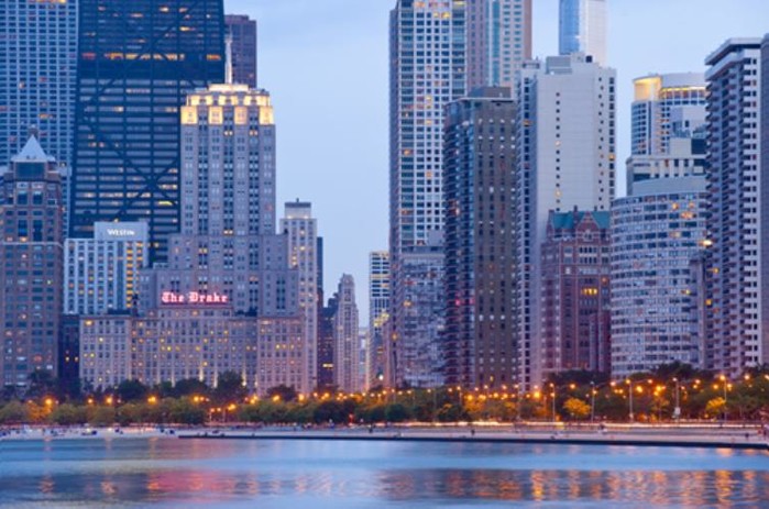 드레이크 호텔은 '환상의 1마일'로 불리는 시카고 최대 번화가 미시간 애비뉴 북쪽 끝에 미시간호수를 마주하고 서 있다.