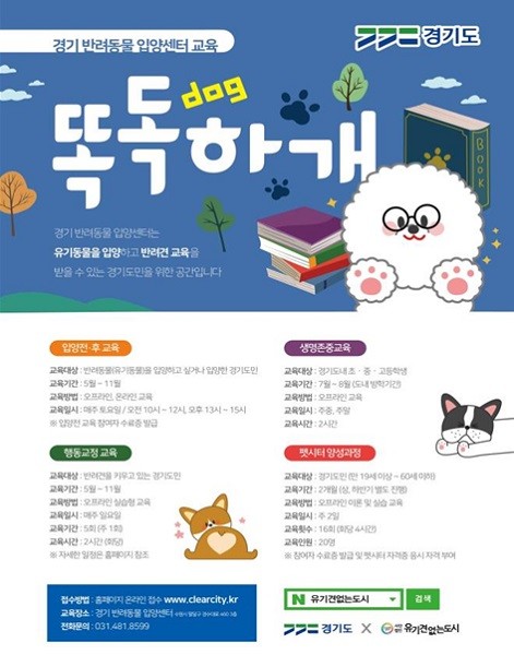 ‘똑독하개’ 교육 프로그램에 대한 자세한 일정과 신청 방법은 ‘경기도 반려동물입양센터’ 홈페이지(cafe.naver.com/ggpetadoptioncenter) 및 ‘유기견없는도시’ 공식 홈페이지(www.clearcity.kr)에서 확인할 수 있다.