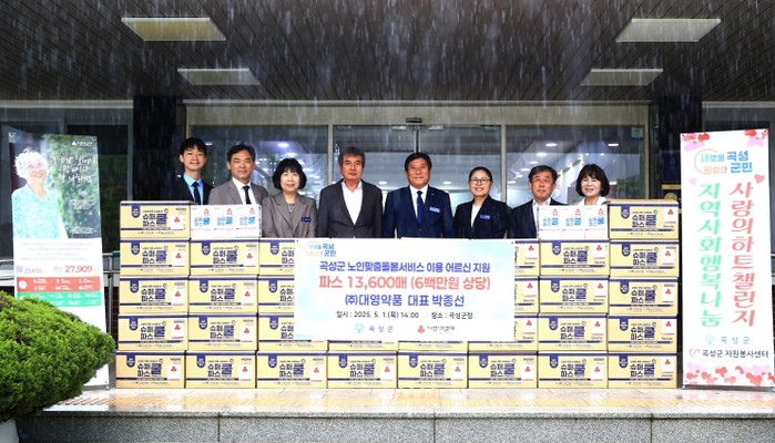 [코리아 이슈저널=김종오 기자] 곡성군은 지난 1일 전남 나주시에 있는 ㈜대영약품(대표 박종선)이 지역사회를 위해 파스 13,600매를 곡성군에 기부했다고 전했다.