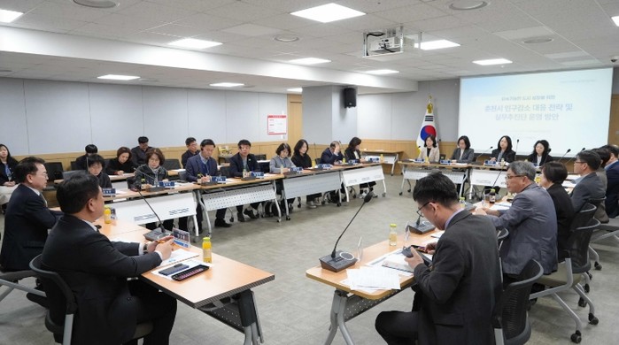 춘천시는 24일 시청 다목적회의실에서 ‘범부서 인구정책 실무추진단’의 첫 회의를 가졌다. 이번 실무추진단 구성은 인구 문제를 특정 부서의 업무로 한정하지 않고 시정 전반의 역량을 결집해 대응하겠다는 의지를 담았다. 부시장을 단장으로 출산·양육·교육·청년·일자리·고령층 지원 등 인구와 직결된 19개 부서가 참여한다.
