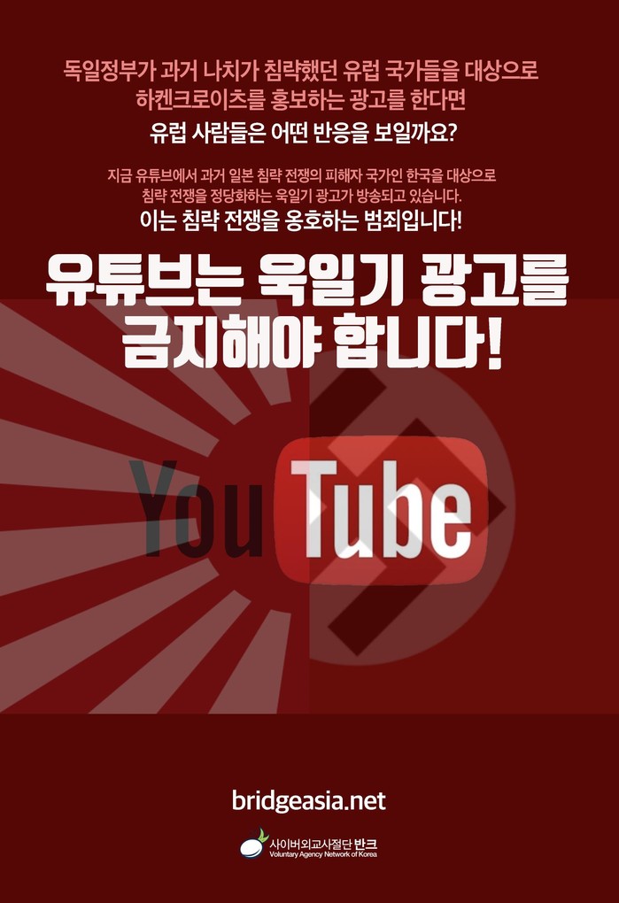 "유튜브 욱일기 광고, 침략전쟁 옹호 범죄"…반크, 포스터 배포