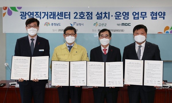 김용찬 도 행정부지사는 17일 도청에서 정낙춘 보령부시장, 최영규 금산부군수, 신원식 대전MBC 사장과 광역직거래센터 2호점 설치 운영 협약(MOU)을 체결했다.