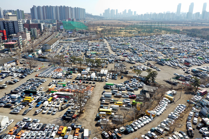▲ 러시아의 우크라이나 침공 사태로 대러시아 중소기업 수출 비중이 높은 자동차(중고차) 업계의 타격이 우려되는 가운데 3일 오후 인천시 연수구 송도유원지 중고차 수출단지에 중고차가 가득 차 있다. 2022.3.3