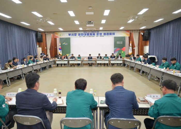 [코리아 이슈저널=홍춘표 기자] 여주시는 지난 4월 21일 시청 4층 대회의실에서 김광덕 부시장 주재로 ‘부시장 권한대행체제 운영 점검회의’를 개최했다. 이번 회의는 20일 여주시장이 제9회 전국동시지방선거 시장예비후보로 등록함에 따라 부시장 권한대행 체제 전환으로 시정의 안정과 업무의 연속성을 유지하고 행정 공백을 최소화하고자 마련했다.