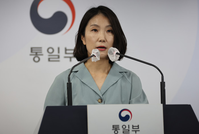 ▲ 이효정 통일부 부대변인이 11일 정부서울청사 브리핑실에서 김여정 노동당 부부장이 남측에 의해 코로나19가 북에 유입됐다고 주장하며 강력한 보복 대응을 검토하겠다고 한 위협 발언에 대해 강한 유감을 발표하고 있다. 2022.8.11