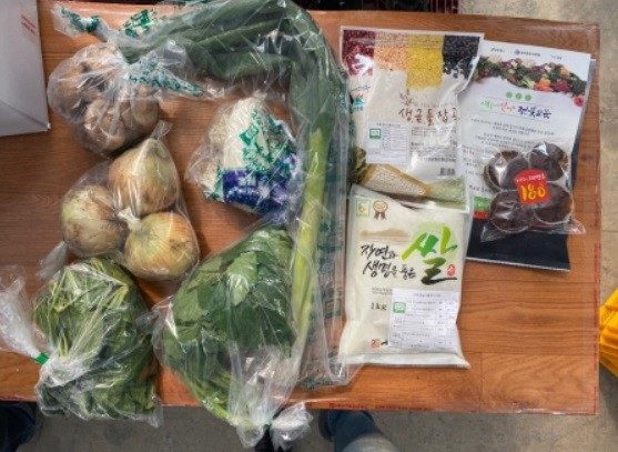 꾸러미는 친환경 쌀·잡곡과 신선 채소류, 지역산 가공품 등으로 구성됐으며, 군산시 농업인이 생산한 친환경농산물 위주로 꾸려졌다.