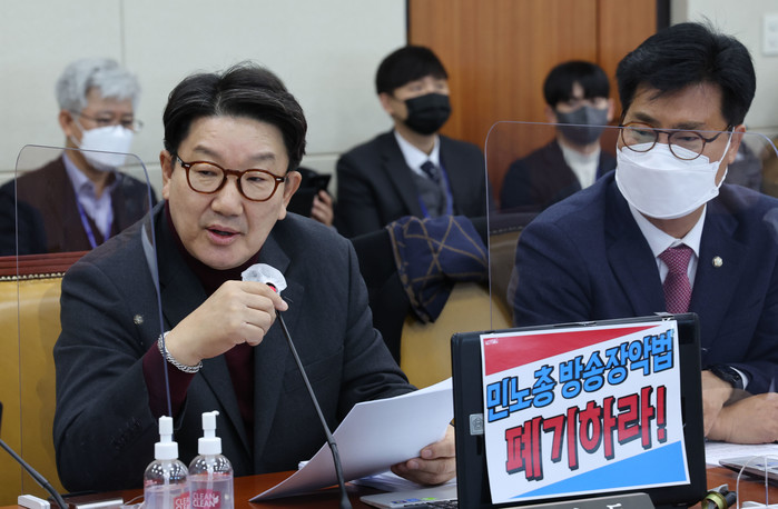 | ▲ 국민의힘 권성동 의원이 1일 오후 서울 여의도 국회에서 열린 과학기술정보방송통신위원회 전체회의에서 방송법 개정안 처리와 관련해 의사진행발언을 하고 있다. 2022.12.1 |