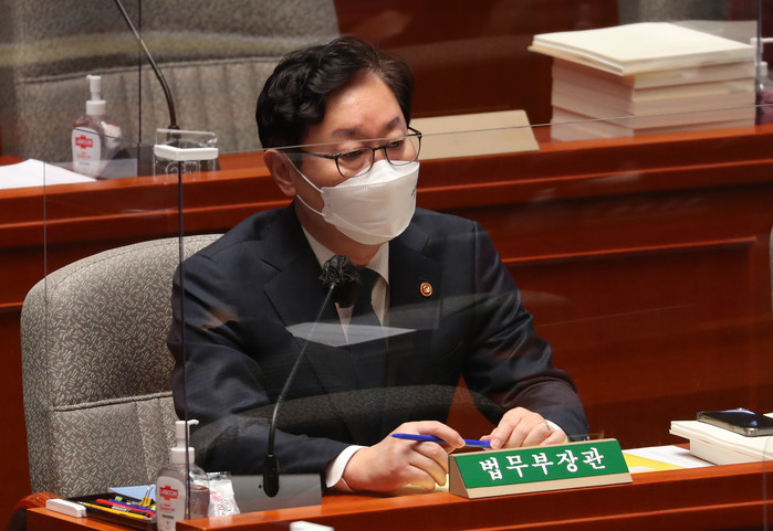 | ▲ 박범계 법무부 장관이 12일 열린 국회 예산결산특별위원회 비경제부처 부별심사에서 의원 질의에 답변하고 있다. 2021.11.12 [국회사진기자단] |