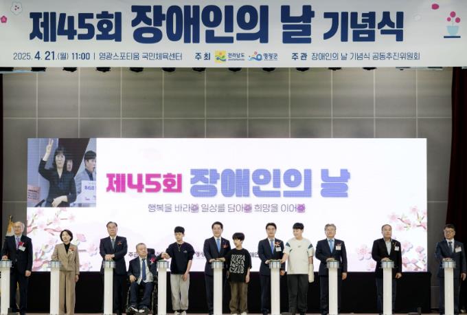 장애인에 대한 주민들의 이해 증진과 재활의식 고취를 위해 전라남도와 영광군이 공동 주관하고, 제45회 전라남도 장애인의 날 기념식 공동추진위원회(지체․농아․시각)가 주최한 이날 행사에는 김영록 전라남도지사, 장세일 영광군수, 이개호 국회의원, 서미화 국회의원, 김태균 전라남도의회 의장, 김강헌 영광군의회 의장을 비롯한 장애인 관련 유관기관 관계자들이 참석해 자리를 빛냈다.
