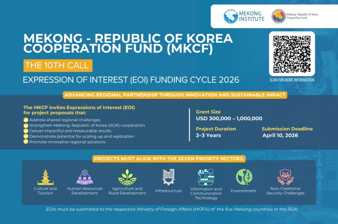 [코리아 이슈저널=최용달 기자] 외교부는 3월 6일부터 4월 10일까지 제10차 한-메콩 협력기금(MKCF, Mekong-Korea Cooperation Fund) 사업 선정 공모를 진행한다.