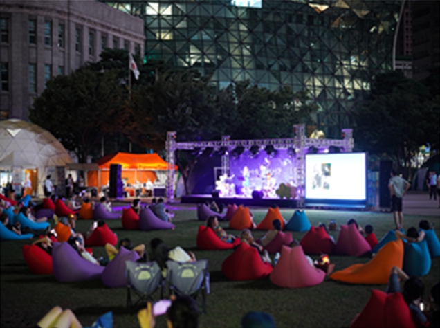 | ▲ 서울야외도서관 야간 행사 을 즐기는 시민 모습 |