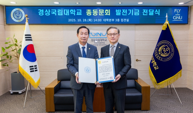 총동문회장은 “경상국립대학교의 발전은 곧 동문 모두의 자부심”이라며 “이번 기부가 대학 발전의 밑거름이 되고, 후배들에게 용기와 희망을 전할 수 있기를 바란다.”라고 말했다.