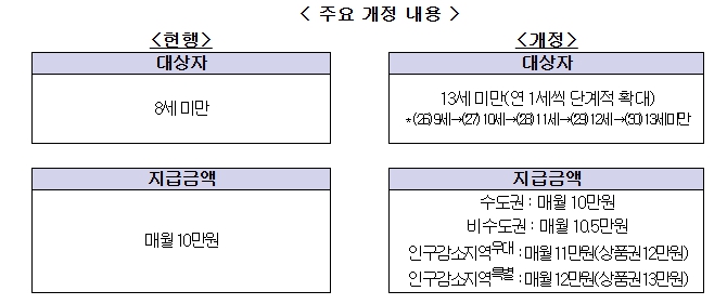 아동수당 지급 대상 8세 미만 아동에서 13세 미만 아동으로 확대