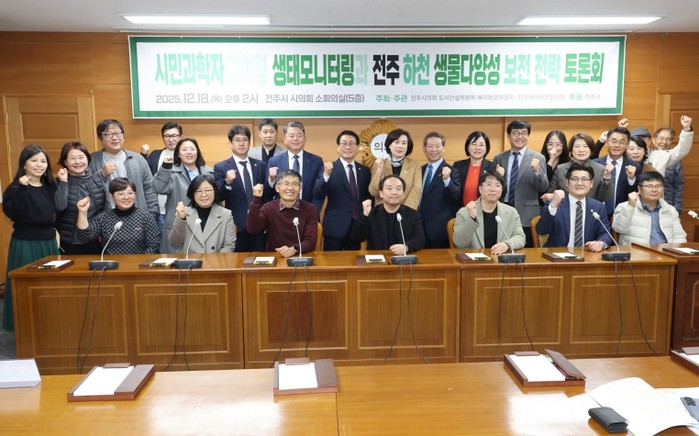 [코리아 이슈저널=홍춘표 기자] 전주시의회는 지난 18일 의회 5층 소회의실에서 ‘전주 하천 생물다양성 보전 전략 토론회’를 열고 전주천·삼천 시민참여 생태모니터링 성과를 공유했다고 22일 밝혔다.