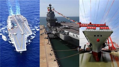 | ▲ 중국 항공모함. 왼쪽부터 랴오닝, 산둥, 푸젠함 [펑파이신문 캡처. 재판매 및 DB 금지] |