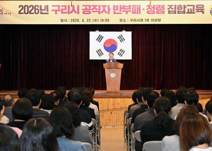 [코리아 이슈저널=홍춘표 기자] 구리시는 지난 4월 22일 구리시청 대강당에서 5급 이상 간부 공무원과 신규·승진 공무원 등 170여 명을 대상으로 ‘2026년 구리시 공직자 반부패·청렴 교육’을 실시했다고 밝혔다.