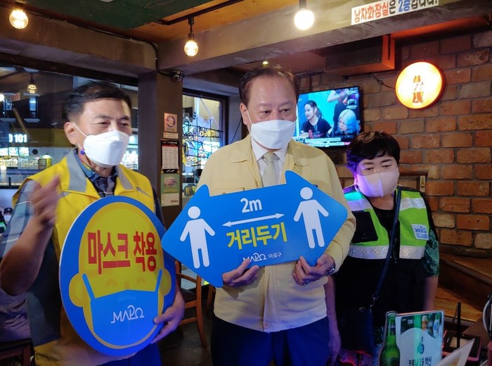 유동균 마포구청장은 “홍대 지역의 코로나19 확산이 재발하지 않도록 우리 마포구 공무원을 비롯해 경찰, 홍대 상인회, 마포자율방범시민순찰대 등이 민관경이 함께 힘을 모아 적극 대처하고 있다”라며 “이번 추석 연휴가 코로나19의 전국적 재확산 여부를 가르는 분수령이 될 수 있는 만큼 모든 국민께서 방역 수칙을 철저히 지켜주시기를 간곡히 당부드린다”고 말했다.