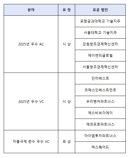 우수 창업기획자(AC)․벤처투자회사(VC) 유공 표창