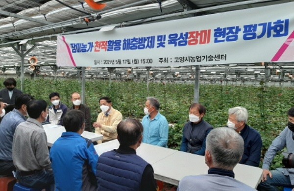 [열린의정뉴스 = 김진성 기자] 경기 고양시(시장 이재준)는 지난 17일 '장미 농가 천적 활용 해충방제 및 육성 장미 평가회'를 원당화훼단지 탁석오 장미재배 농가에서 개최했다.