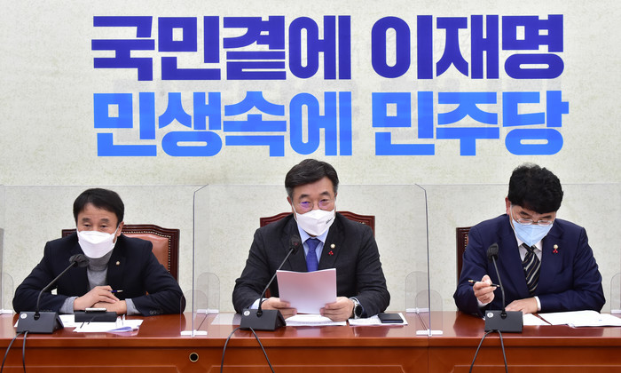 ▲ 더불어민주당 윤호중 원내대표가 21일 서울 여의도 국회에서 열린 원내대책회의에서 발언하고 있다. 2021.12.21 [국회사진기자단]