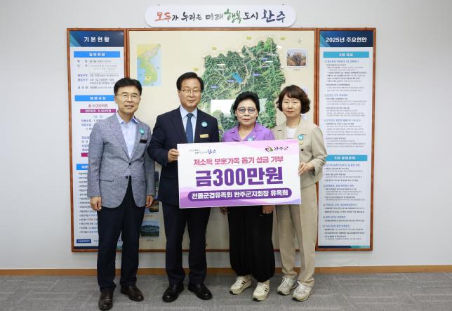 [코리아 이슈저널=김종오 기자] 유옥희 대한민국 전몰군경유족회 완주군지회장이 지난 11일 완주군을 찾아 저소득 보훈가족을 위해 300만 원을 전달했다.