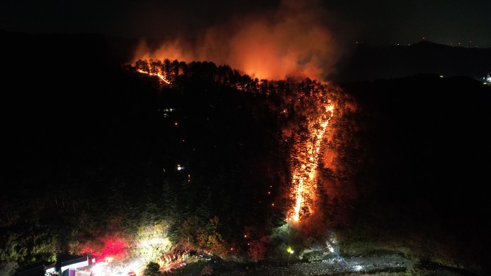 산림 당국의 특수진화대원, 소방대원 등 300명이 넘는 인력과 200대가 넘는 진화 장비가 긴급 투입돼 겨우 불길을 잡았다.