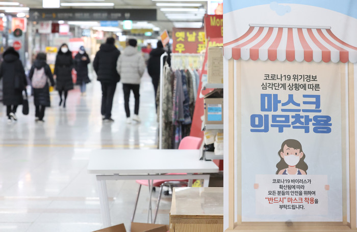 ▲ 18일 서울시내 한 실내 쇼핑몰에 마스크 의무 착용 안내문이 써붙어 있다. 2023.1.18
