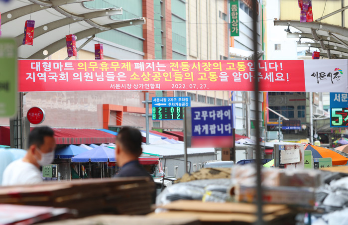 | ▲ '대형마트 의무휴무제 폐지는 전통시장의 고통입니다' [연합뉴스 자료 사진] |