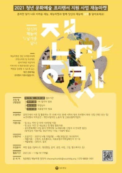 '재능마켓'은 코로나19로 인한 공연·행사의 취소 등으로 경력단절 및 생활고를 겪고 있는 청년 프리랜서를 지원하기 위해 청춘삘딩에서 마련한 사업이다.