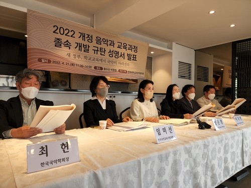 전국국악교육자협의회는 21일 130여 개 국악·교육·연주계 단체와 함께 "졸속적으로 추진되는 음악과 교육과정 개정 작업을 즉각 중단하고 내용을 전면 재검토하라"고 교육부에 촉구하는 성명을 냈다.
