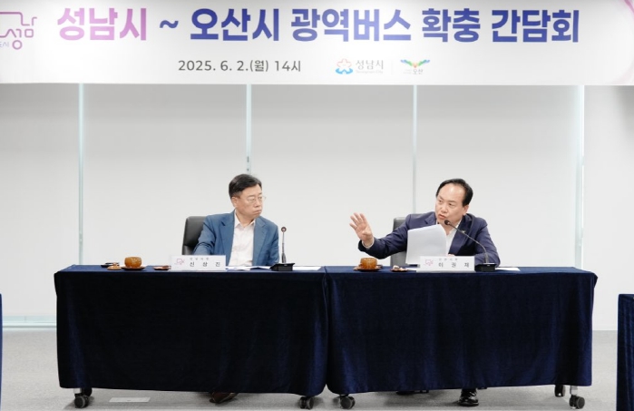 [코리아 이슈저널=홍춘표 기자] 오산시와 성남시는 2일 성남시청에서 간담회를 열고, 오산발 성남행 광역버스 노선 확대 및 대중교통 이용 편의 제고를 위한 협력 방안을 논의했다.