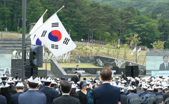 추념식은 기관단체장과 국가유공자 가족 및 보훈단체장의 동반입장을 시작으로 순국선열과 호국영령에 대한 묵념, 국민의례, 헌화 및 분향, 편지 낭독, 1부 추념공연, 추념사, 2부 추념공연, 현충의 노래 제창 순으로 진행됐다.