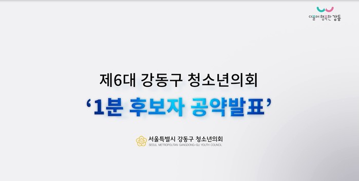 코로나19 상황에 맞춰 영상으로 준비한 입후보자 공약 발표는 유튜브에서 ‘제6대 강동구 청소년의회’를 검색하면 자세히 확인할 수 있다. 이 공약영상은 오는 16일 온라인으로 열리는 ‘강동구 청소년민주주의축제’에서도 실시간으로 송출하는 한편, 후보자 공약 전시도 진행해 집중 홍보할 계획이다.