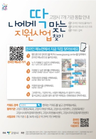 온라인 자료집 내려받기, 개인별 맞춤형 사업 조회 등은 '나에게 딱 맞는 지원사업 찾기' 사이트(goyang.center/goyang/event2021)에서 확인할 수 있다.