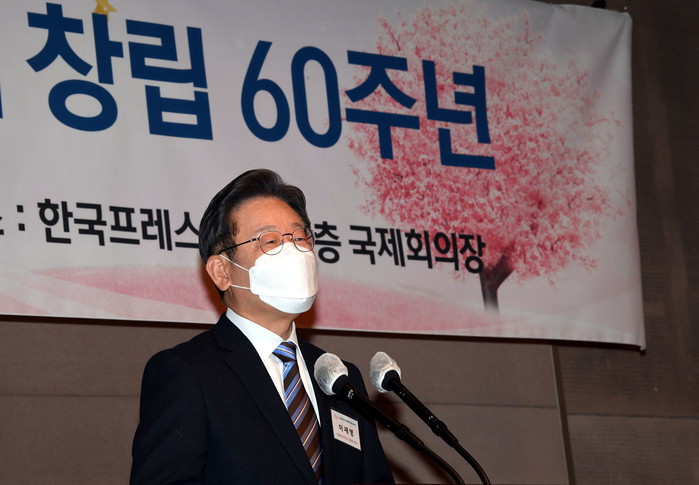 | ▲ 한국여성기자협회 창립 60주년 기념식에서 축사하는 이재명 후보 [국회사진기자단] |