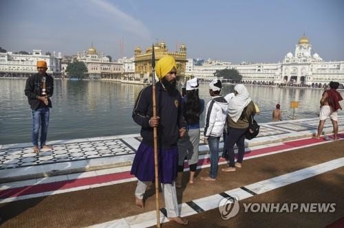 | ▲ 인도 시크교 성지인 황금사원의 경비원(가운데) [AP 연합뉴스 자료사진. 재판매 및 DB 금지] |