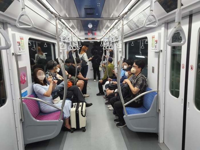 일반 지하철보다 작은 규모의 열차 3량(48개 좌석)으로 구성돼 출근길 혼잡이 우려되기도 했지만, 개통 초기여서 그런지 아직은 공간이 넉넉한 편이었다. 8시 20분께 샛강역 방면 열차의 좌석은 금세 가득 찼지만, 가운데 통로에는 사람이 지나다닐 만한 여유가 있었다. 군데군데 빈 좌석도 종종 찾아볼 수 있었다.