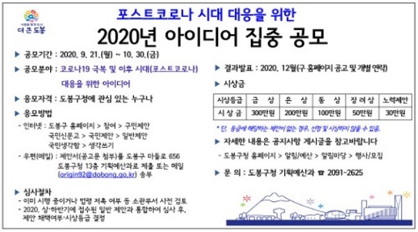 도봉구, 포스트 코로나 대비 아이디어 공모