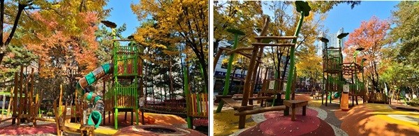 | ▲ 아름다운 자연 수목과 조화를 이루고 창의적인 놀이기구가 설치된 도선어린이공원의 ‘어린이 모험놀이터’[출처=성동구청] |