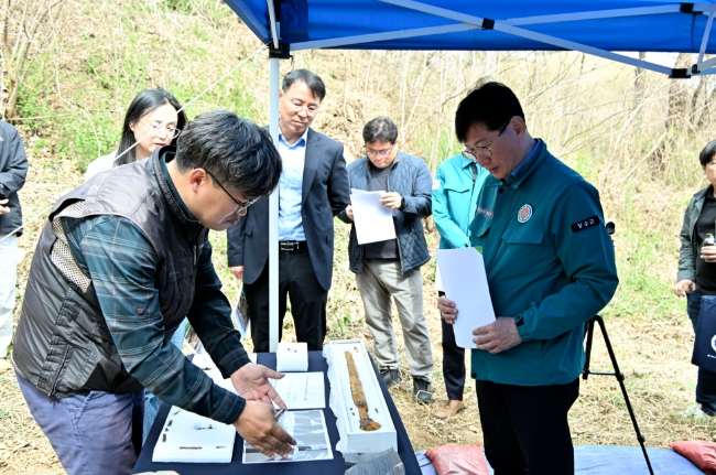 [코리아 이슈저널=김종오 기자] 최훈식 장수군수가 9일 장수읍 동촌리에 위치한 동촌리무덤군 16호분 발굴조사 현장을 방문했다.
