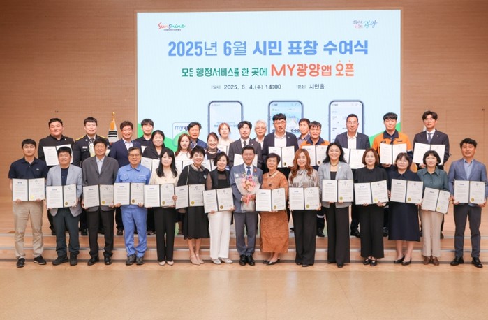 [코리아 이슈저널=김종오 기자] 광양시는 6월 4일 시청 시민홀에서 지역사회 발전에 기여하고 각 분야에서 헌신적인 봉사활동을 펼쳐온 시민 36명에게 시정발전 유공 시민 표창을 수여했다고 밝혔다.