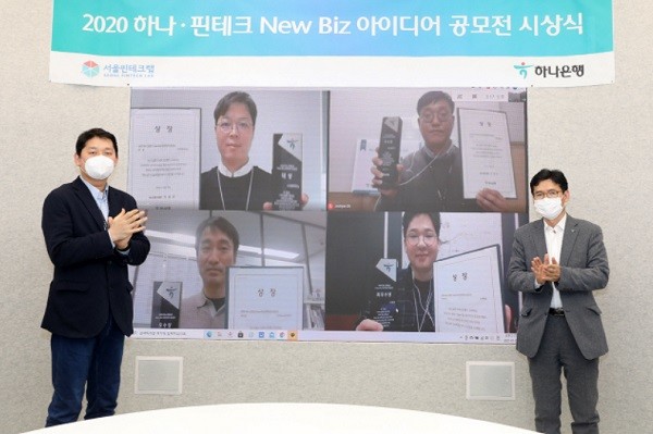 [열린의정뉴스 = 김윤영 기자] 하나은행은 지난 5일 ‘하나·핀테크 뉴 비즈(New Biz) 아이디어 공모전’ 온라인 시상식을 개최했다고 밝혔다. 이번 공모전은 하나은행이 제공하는 오픈(Open) API 및 공공 데이터를 활용한 신사업 아이디어를 기획하고 실제로 구현하는 행사로, 서울 핀테크랩과 공동으로 주관했다.
