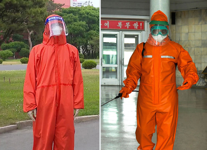 코로나 확산 초기인 2020년엔 북한 방역요원들이 공공장소를 소독할 때 얇은 일회용 마스크만 착용한 경우가 부지기수였고, 간혹 안면마스크가 아닌 방독면이나 고글로 얼굴을 가리기도 했다.
