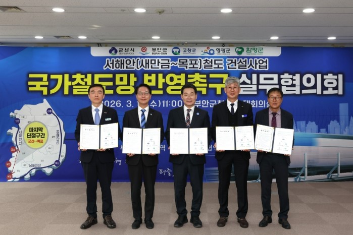 [코리아 이슈저널=김종오 기자] 영광군, 함평군, 부안군, 군산시, 고창군 등 서해안권 5개 시·군이 서해안 철도 건설사업의 국가계획 반영을 위해 공동 대응에 나섰다.