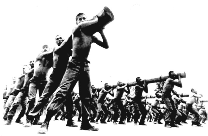 | ▲ 80년 제5공화국정권창출의 소용돌이속에서 "사회정화"라는 미명아래 삼청교육대 입소생들이 봉 체조를 받고 있다. 1988.10.5 (서울=연합뉴스) <저작권자 ⓒ 2003 연합뉴스. 무단전재-재배포 금지.>(본사 자료) |