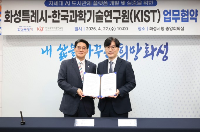 [코리아 이슈저널=홍춘표 기자] 화성특례시는 도시상태정의 기반의 AI 도시관제 체계로의 전환에 본격 착수했다. 시는 22일 한국과학기술연구원(KIST)과 ‘차세대 AI 도시관제 플랫폼 개발 및 실증’을 위한 업무협약(MOU)을 체결했다.