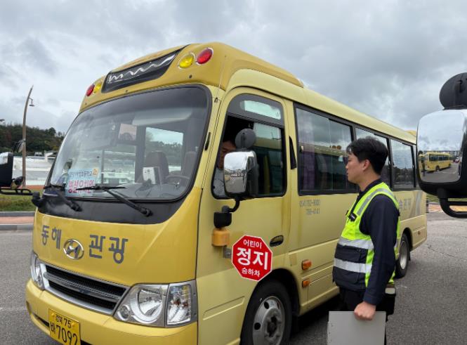 [코리아 이슈저널=김태훈 기자] 영덕교육지원청은 2025년 10월 21일 영덕군민운동장 주차장에서 영덕경찰서, 한국교통안전공단과 합동으로 2025년 하반기 어린이 통학버스 합동 안전점검을 실시했다.