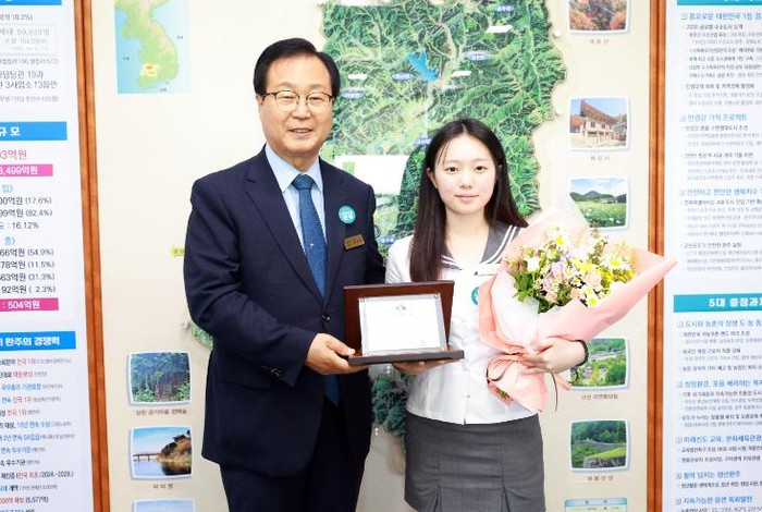 올해 두 번째 1일 군수인 이한나 학생은 위촉패 수여, 보안서약서 작성, 문서 결재를 시작으로 군정 전반의 현황과 관심 분야에 대한 업무 보고를 받은 후, 주요 현안 사업 현장을 방문하여 현장 행정을 체험했다.