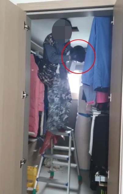 | ▲ C씨 집 드레스룸 천장에서 발견된 인분(빨간색 원) [C씨 제공. 재판매 및 DB 금지] |